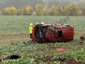 Die Leitstelle alarmierte uns zu auslaufenden Flüssigkeiten nach einem Verkehrsunfall auf der Landstraße 72 – Kreuzung Amesdorf/Warmsdorf/Giersleben. Dort sollte sich laut weiterer Informationen der Leitstelle ein Pkw überschlagen haben und es sollte mehrere Verletzte geben. Vor Ort angekommen bestätigte sich diese Lage. Wir unterstützten den bereits vor Ort befindlichen Rettungsdienst bei der Versorgung und Betreuung der verletzten Personen, gleichzeitig wurde das Batteriemanagement am verunfallten Fahrzeug durchgeführt und die ausgelaufenen Flüssigkeiten gebunden. Nachdem die verletzten Personen zur weiteren Behandlung in die Rettungswagen transportiert wurden, begannen wir mit der Reinigung der Straße und unterstützten später zusätzlich den Abschleppdienst beim Aufladen des Fahrzeugs. Anschließend konnten wir die Einsatzstelle an die Polizei übergeben und ins Gerätehaus zurückkehren.